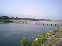 さて、11番に向けて南に移動するが、吉野川まではずっと緩やかな下りとなり、非常に気持ちが良く、体力が幾分回復した。吉野川は歩き遍路で使う沈下橋を渡る。このあたりは吉野川は2つの流れに分かれており、間は大きな中州になっていて、田んぼや畑(サツマイモ?)になっている。北から大野島橋、川島橋を渡る。この橋と川のある風景はすばらしく良い。自動車遍路の看板に従うと、国道318号の橋に誘導されるので、自転車遍路の場合は、この沈下橋を使うことを強くお勧めしたい。