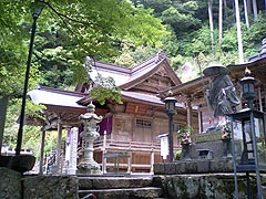 奈半利を越えてしばらく行った所に、27番右折の案内板があるので、それに従う。27番はこの旅最後の難所(のつもりだったが、後にもうひとつ難所が有った)。最初はゆるい上り坂がったが、徐々に急になってくる。「あと○○Km」の看板が多いので、目安にはなった。こんなときに限って太陽が顔を出し、暑さが体力を奪う。やっとのことで27番神峯寺に到着(11:30)。標高差約400mとの事だが、その数字以上に疲れた。山間の崖の間に作られた寺で、手入れが行き届いた山寺といった風情だ。
