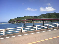 来た道を戻り、56号を経て、すぐに県道39号を南下する。途中の中華料理屋で昼飯を兼ねて休憩した。再び出発し、塚地坂トンネルを越えると、今回初めての海辺の道に突き当たる。すぐに宇佐大橋を渡る。途中、海水浴場が点在しているが、都心に近い海と違って、人がまばらでみんな楽しそうだ。