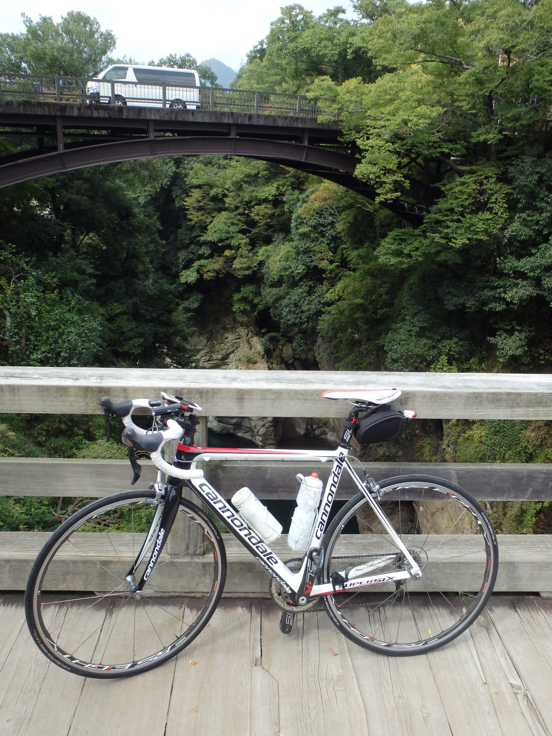 大月の少し手間の、日本三大奇橋の一つと言われている『猿橋』を見学した。木造の不思議な構造をした橋だが、人は自由に(無料で)通行可能である。残りの2つのうち錦帯橋は決まりみたいだが、残りの1つは諸説有りのようだ。