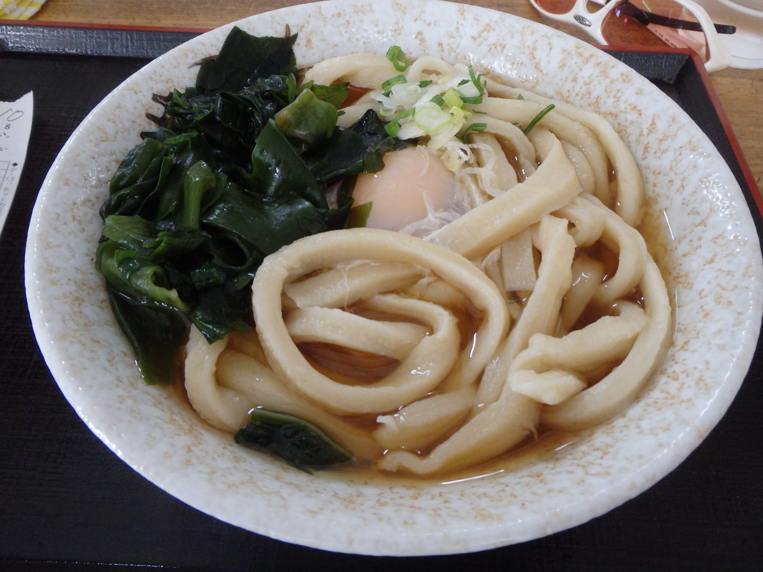 大月からは甲州街道に別れを告げ、国道139号を富士吉田方面へ走る。都留の手前の吉田うどんの有名店である『やまもとうどん』で吉田うどんを堪能する。吉田うどんは、讃岐うどんよりも太めでモチっとした歯ごたえが特徴である。肉うどんが有名だが、今回は月見わかめを食した。
