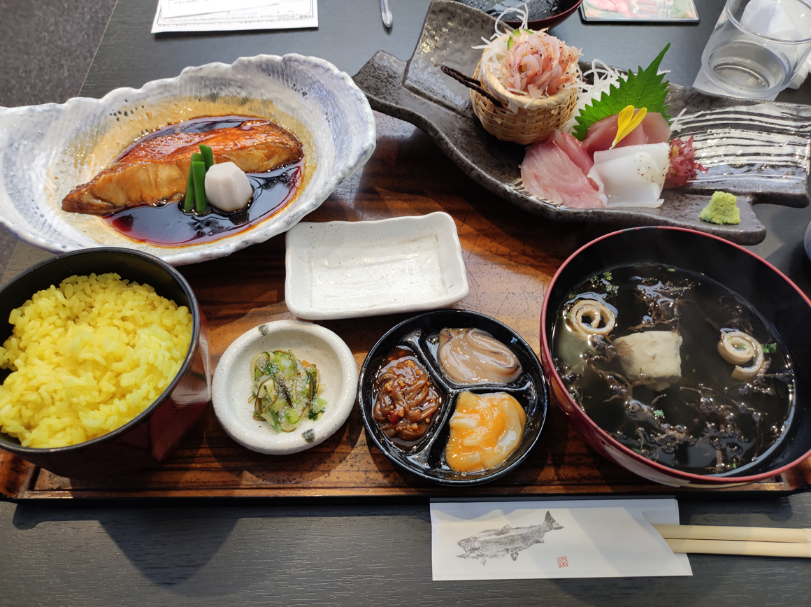 正午を過ぎて暑さと疲れがピークの所で、「網元料理徳造丸 魚庵」でランチ休憩。付け合わせも含めてワンランク上の美味しさで、価格もリーズナブルでおすすめです。