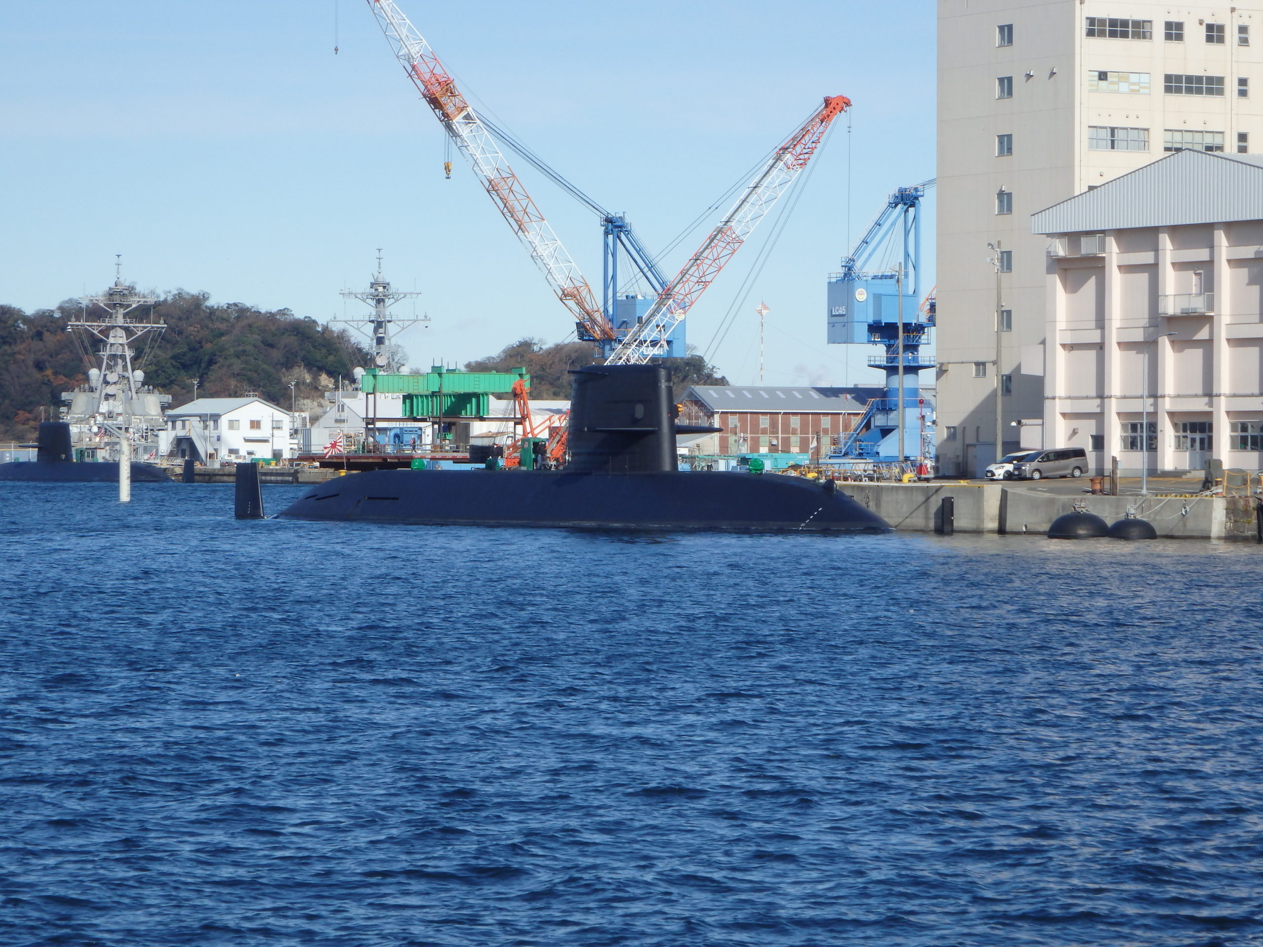 横須賀のヴェルニー公園で小休止。いつもは自衛隊の艦船が停泊しているが、今日は少なめだった。