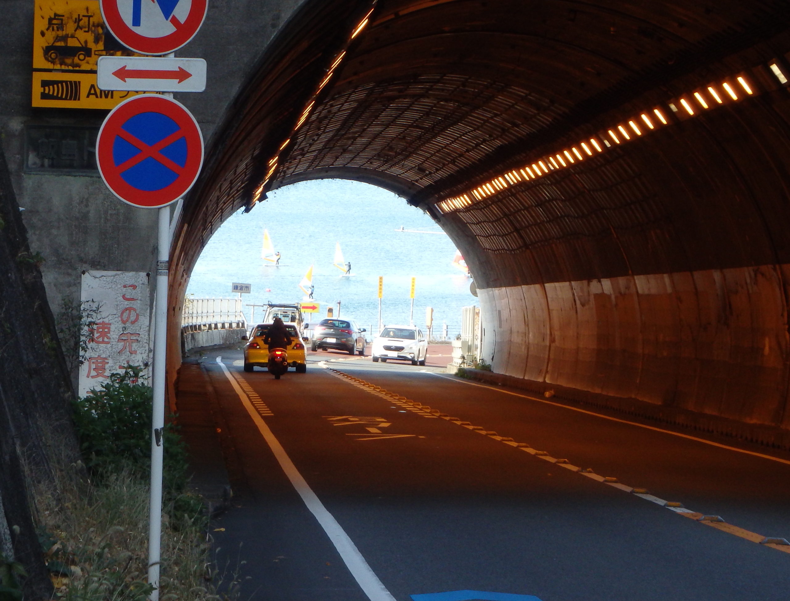 逗子のトンネル越しに由比ヶ浜が見え、鎌倉も近い。