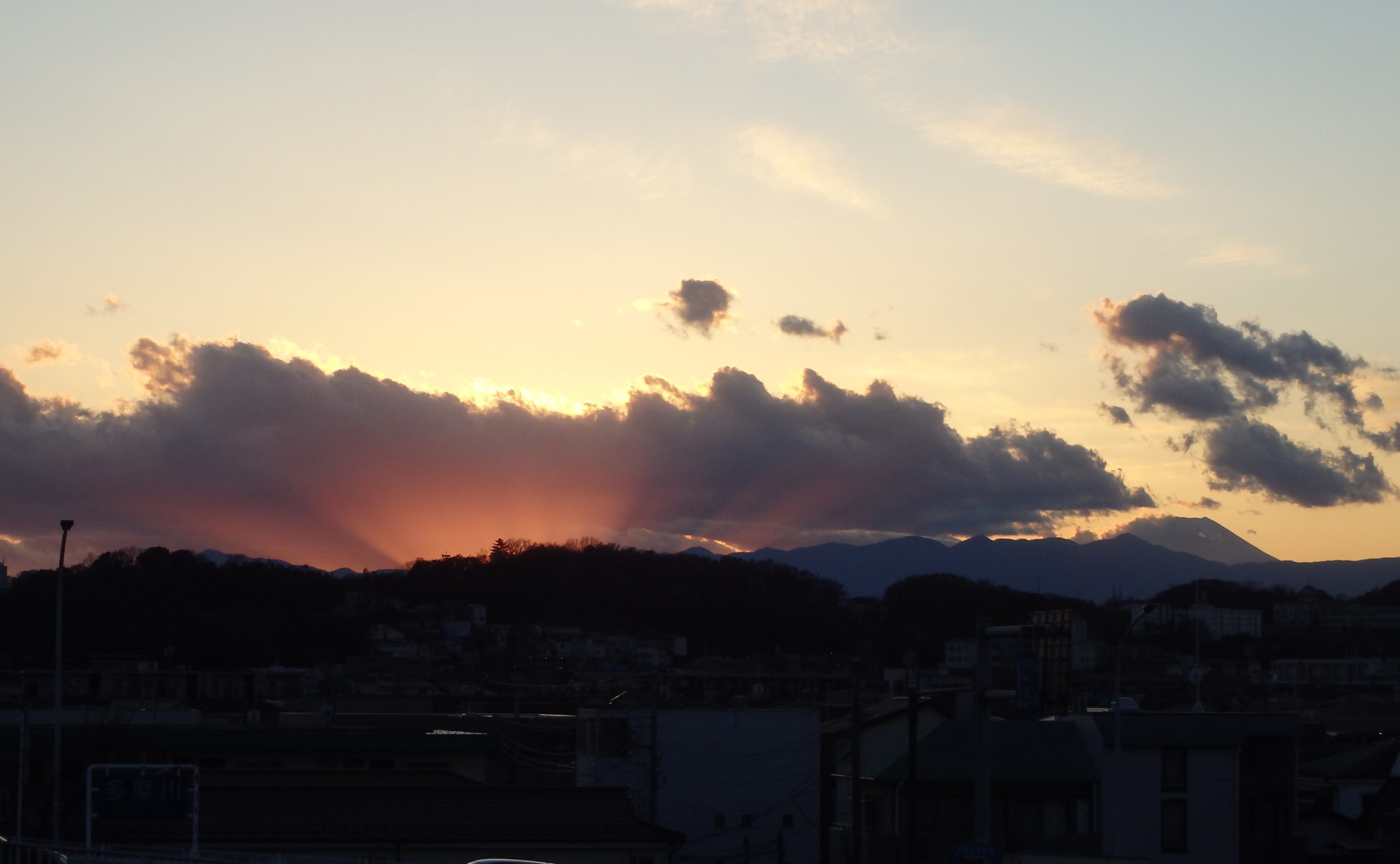 最後に、夕焼け空の向こうに小さくなった富士山の先っぽを再び見ることができた。