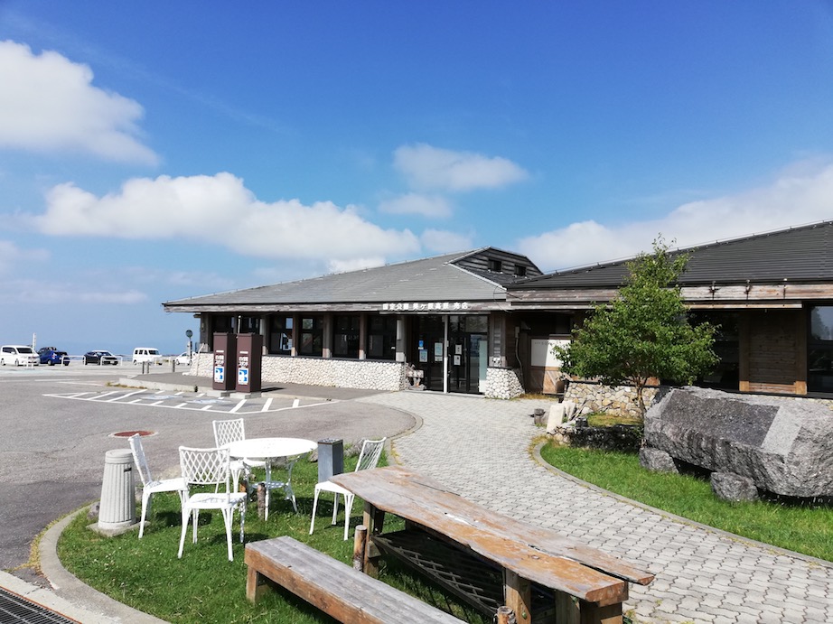 なだらかな登りが続く高原の道を進むと、車両通行道路の終点である、美ヶ原自然保護センターに到着。ここの時点で1,900mほどあり、松本の標高が約590mなので、既に1,300m以上登ってきたことになる。