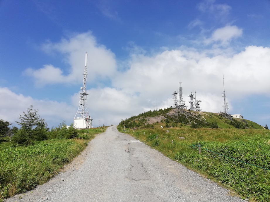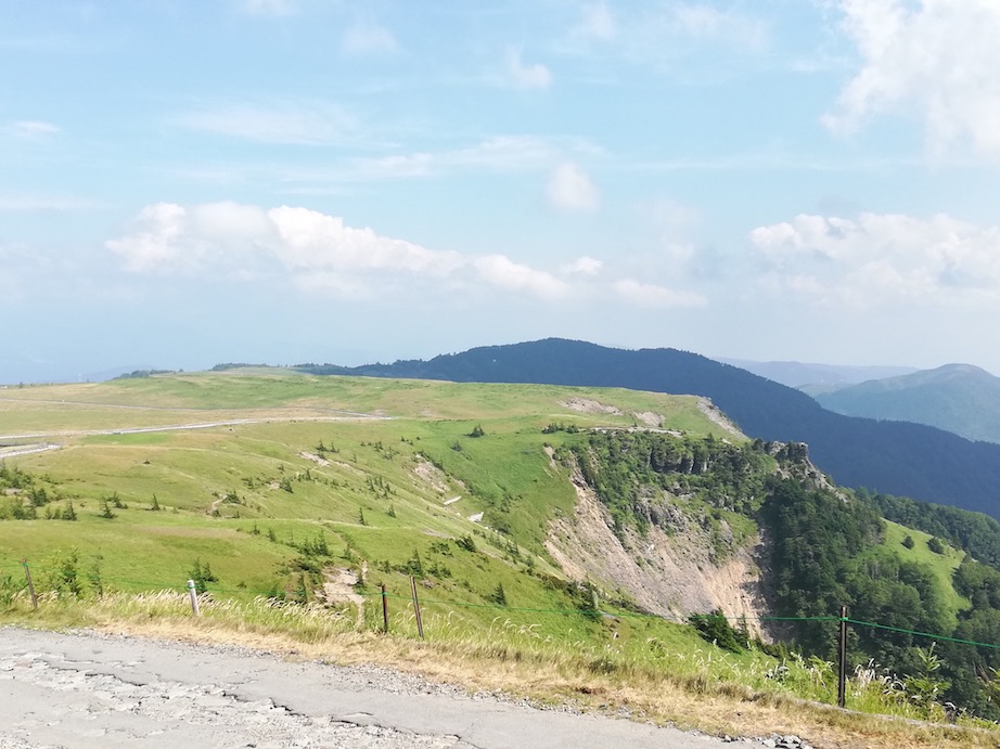 バテバテになり、やっとのことで霧ヶ峰に到着。ここから車山高原を経て白樺湖までは、高原の絶景が続く。しかし、車山高原までは最後の登りがあり、つらさで景色を楽しむ余裕がなかった。